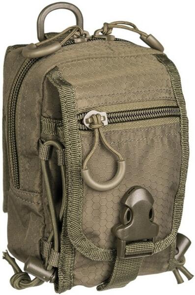 MOLLE pántokkal övre csatolható kis méretű táska Több praktikus rekesszel rendelkezik. A cipzárokat megerősített zsineggel kényelmesen működtethetjük, így nem kell félni attól, hogy eltörnek. Molle rendszere miatt (A M. O. L. L. E. rendszer - jelentése: moduláris könnyű málhafelszerelés) nemcsak övünkre, de hátizsákunkra vagy taktikai mellényünkre is csatolhatjuk. Az övtáska méretei